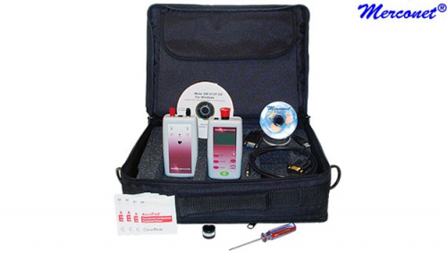 Deze certificatie test set biedt de installateur een complete oplossing voor het certificeren, testen, onderhouden, repareren en documenteren van optische fiber systemen. Met deze set worden alle parameters van optische fiber netwerken getest. Dit zijn het uitgangsvermogen van de fiber, het gekoppeld vermogen van de zender en het verlies in een fiber. Deze testset bevat de volgende producten: OZ58 De zender kan gebruikt worden bij single-mode fiber optische kabels in de grond. De connector kan aan ieder netwerk worden aangepast door het gebruik van verloopkabels of verloopadapters. Dit apparaat is eenvoudig te bedienen met een golflengte/uit-schakelaar, wat de golflengte selecteert of de zender uitschakelt. Er is ook een schakelaar waarmee CW of 2 kHz voor de golflengte wordt geselecteerd. De zender is geschikt voor het uitvoeren van insertion loss metingen van fiber optic verbindingen wanneer deze wordt gebruikt in combinatie met een ontvanger. Bij het testen van verbindingen in de grond of in gebouwen is de zender het perfecte gereedschap, naast de ontvanger die daarbij ook wordt gebruikt. De uitgang is gestabiliseerd waardoor nauwkeurige testresultaten worden verkregen volgens de TIA/EIA standaarden. Het vermogen van de golflengten is individueel instelbaar met een stelschroef voor een variabele verzwakking of om het vermogen te verminderen. Hierdoor gaat de batterij langer mee als een hoog optisch vermogen niet noodzakelijk is voor de test of kan het vermogen juist verhoogd worden bij lange aansluitingen. De zender wordt geleverd in een stevige rubberen behuizing. OM42 De ontvanger is ontworpen voor optische fiber systemen met een hoog vermogen en voor CATV toepassingen. De ontvanger heeft een hoog vermogen Germanium detector. De ontvanger heeft een instelbare resolutie van 0,1 of 0,01 dB, een intern geheugen voor 500 metingen met datum en tijd, een seriële poort en een USB poort voor communicatie met de PC. In het interne geheugen van de meter kunnen 500 metingen worden opgeslagen. Deze metingen worden met de bijgeleverde PC software op een eenvoudige manier uitgelezen en opgeslagen in de PC. De resultaten kunnen naar keuze in detail of als lijst worden afgedrukt of kunnen worden opgeslagen in een spreadsheet. De ontvanger meet optisch vermogen, verlies (attenuation) en optisch return loss. De ontvanger is gecalibreerd voor golflengten van industrie standaarden (NIST traceerbaar). De nul referentie functie is ideaal voor het testen van optische fiber kabels in dB, de referentiewaarde wordt opgeslagen in de ontvanger. Een universele 2,5 mm adapter met schroefdraad wordt meegeleverd, andere adapters zijn optioneel leverbaar. Dankzij de achtergrondverlichting zijn de meetwaarden altijd goed zichtbaar. De ontvanger wordt geleverd in een stevige rubberen behuizing.