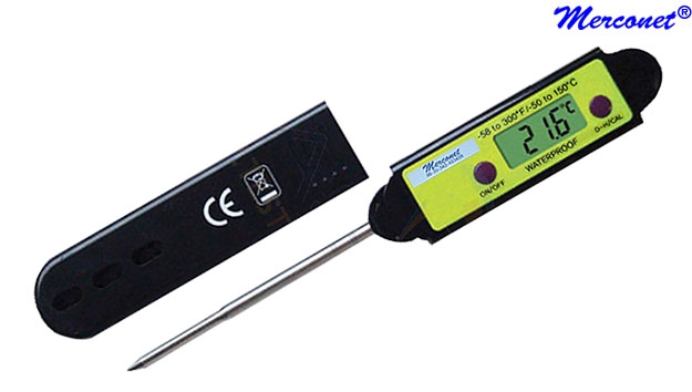 1. How do I check calibration of my pocket thermometer? Place thermometer in a solution of crushed ice and water, swirl the water around and temperature should read close to 32°F. 2. Does the whole stem need to be immersed to get an accurate reading? The sensor is in the tip of the probe and needs to be 1/2 inch into whatever you are measuring. 3. What battery does my pocket thermometer use? The LR44 button battery is used in pocket digital thermometers.